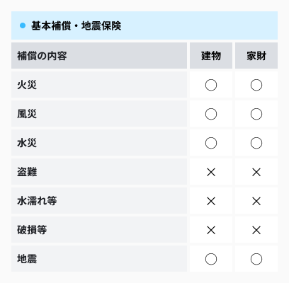 契約ごとの補償/保障の内容が